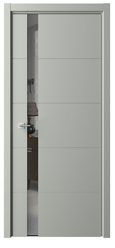 Дверь Геометрия-7 ширина 90 см Серый Эмаль Зеркало грей с замком кромка В цвет полотна в Тюмени
